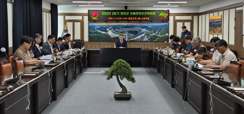[합천=뉴시스] 서희원 기자 = 경남 합천군은 10일 2층 소회의실에서 사용자위원과 근로자위원이 참석한 가운데 2025년 제2분기 산업안전보건위원회 정기회의를 개최했다.