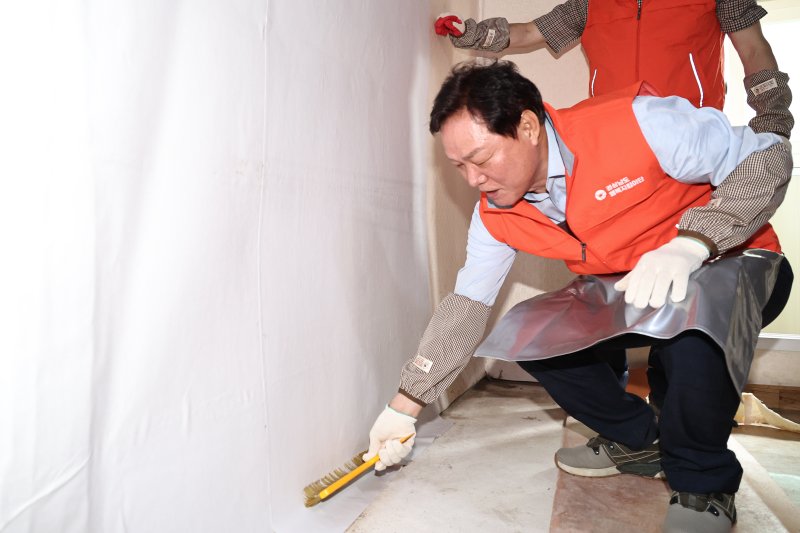 박완수 도지사는 10일 거창군에 거주하는 독립유공자 유족 박길섭 씨 자택을 방문해 주거환경 개선 작업에 참여했다.