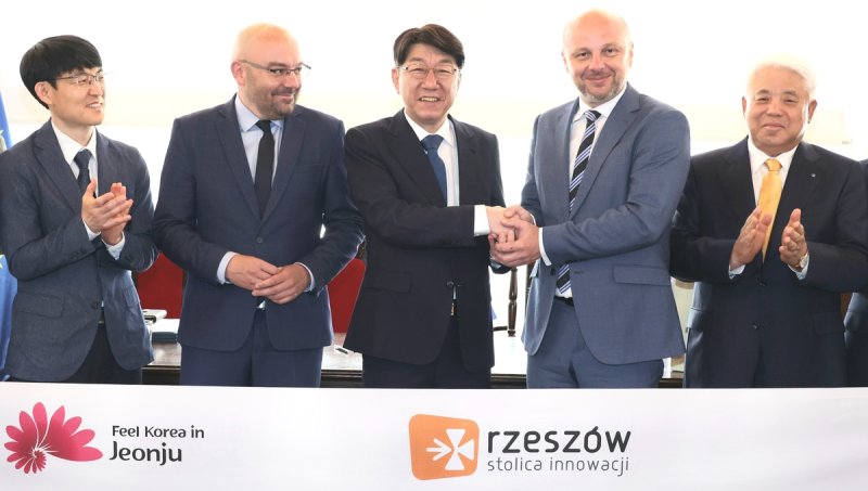 폴란드를 방문 중인 우범기 전주시장과 콘라드 피요엑 제슈프시장은 전날(현지시간) 제슈프시청에서 ▲ 항공우주산업·탄소 복합재 산업 등 전략산업 분야의 기업 교류 활성화 ▲ 산업단지 방문 및 기업 간담회 개최 ▲ 연구기관·대학·교육기관·협회와 교류 촉진을 약속했다.