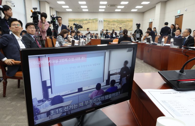 [서울=뉴시스]신재현 이승재 기자 = 국회 교육위원회는 11일 보수 성향 단체 '리박스쿨'의 댓글 여론조작 의혹을 두고 공방을 벌였다. 여당은 이주호 국무총리 직무대행 겸 교육부 장관의 불출석에 대해 유감을 표했고, 진상 규명을 위한 청문회 개최도 요구했다. 야당은 '드루킹 댓글 여론 조작' 사건으로 실형을 선고받은 김경수 전 경남도지사의 국회 출석을 요구하면서 맞섰다.