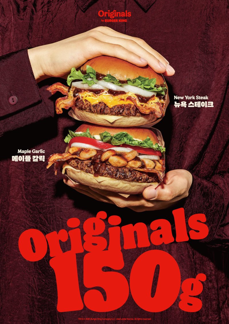 버거킹 관계자는 "오리지널스 150g의 두터운 패티가 선사하는 압도적인 식감과 깊은 풍미는 버거킹이 고집해 온 쇠고기 본연의 맛과 품질을 그대로 보여준다"며 "세계 각국에서 영감을 받은 다채로운 재료를 더해, 일상 속에서 색다른 미식의 경험을 제공했다"고 말했다.