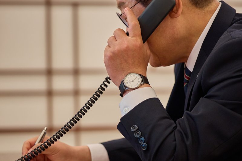 [서울=뉴시스] 고범준 기자 = 이재명 대통령이 9일 서울 용산구 대통령실 청사 집무실에서 이시바 시게루 일본 총리와 전화 통화를 위해 수화기를 들고 있다. 2025.06.09. bjko@newsis.com