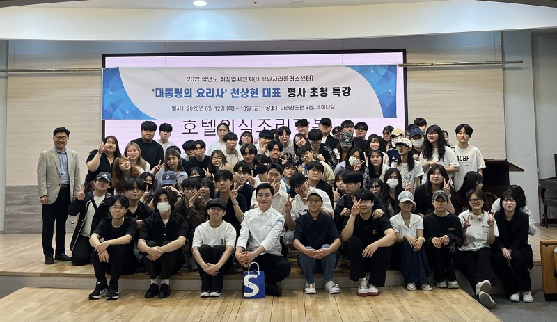 학교 대학일자리플러스센터가 진로 설계와 취업을 준비하는 호텔외식조리학부 학생들을 위해 마련한 자리로 천 대표는 생생한 경험과 삶의 철학을 전했다.