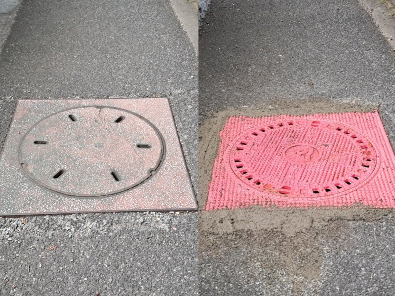 (울산=뉴스1) 김세은 기자 = 길거리에서 흔히 보이는 분홍색 콘크리트 맨홀 뚜껑의 위험성이 전해지자 울산 북구가 발빠르게 교체 작업에 나섰다.