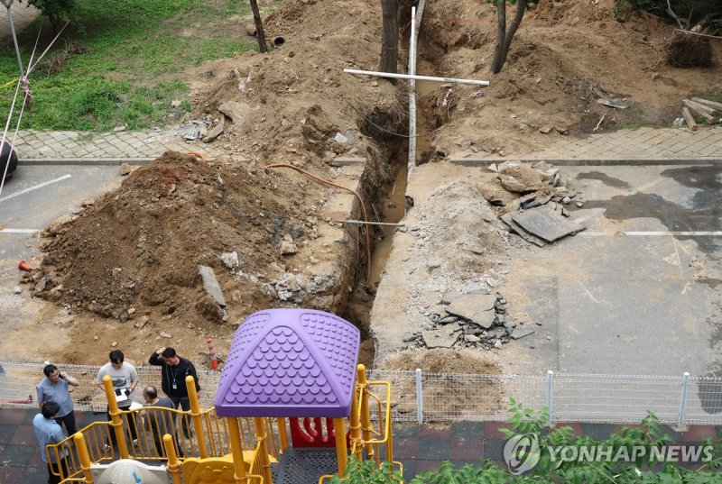 (서울=연합뉴스) 최원정 기자 = 13일 오후 1시 2분께 서울 강남구 대치동 은마아파트 하수관 교체 공사 현장에서 매몰 사고가 발생해 작업자 2명이 병원에 이송됐다.