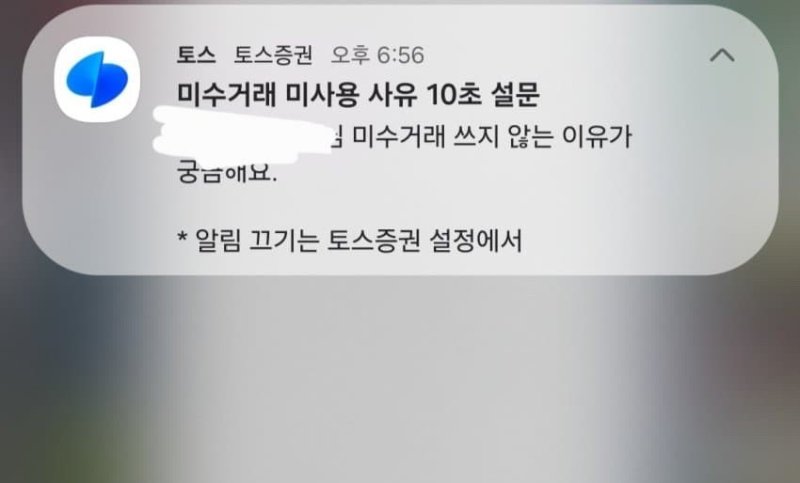 미수거래를 이용한 적이 없는 서비스 이용자들을 대상으로 한 알림으로, "미수거래를 쓰지 않는 이유가 궁금해요"라는 문구를 사용했는데 이용자들 사이에서는 미수거래 서비스 이용을 유도한 것이 아니냐는 불만이 나왔다. 한 투자자는 "왜 빚내서 투자하지 않냐고 묻는 것 같았다"고 했으며, 커뮤니티에서도 부정적인 반응이 나왔다.