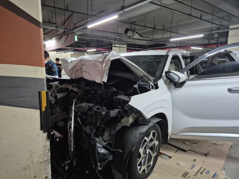 13일 인천소방본부 등에 따르면 이날 오후 3시 35분쯤 부평구 삼산동 대형마트 지하 주차장에서 A 씨(85)가 몰던 팰리세이드 차량이 기둥을 들이받았다.