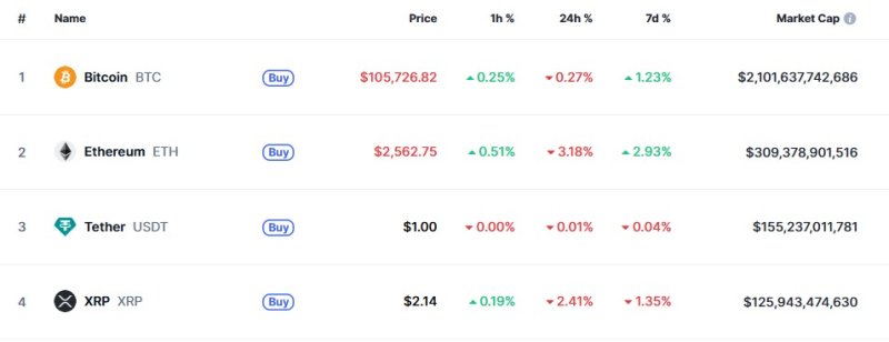 14일 오전 7시 30분 현재 글로벌 코인 시황 중계사이트인 코인마켓캡에서 비트코인은 24시간 전보다 0.27% 하락한 10만5726달러를 기록하고 있다.
