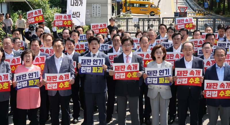 서지영 원내대변인은 이날 논평에서 "이 대통령은 자신의 5개 사건, 12개 혐의는 '정적 제거용'이라고 주장했다"며 "대규모 특검을 동원한 광란의 '정치 보복'은 제1야당과 상대 진영 전체를 궤멸시키겠다는 것인가"라고 말했다.