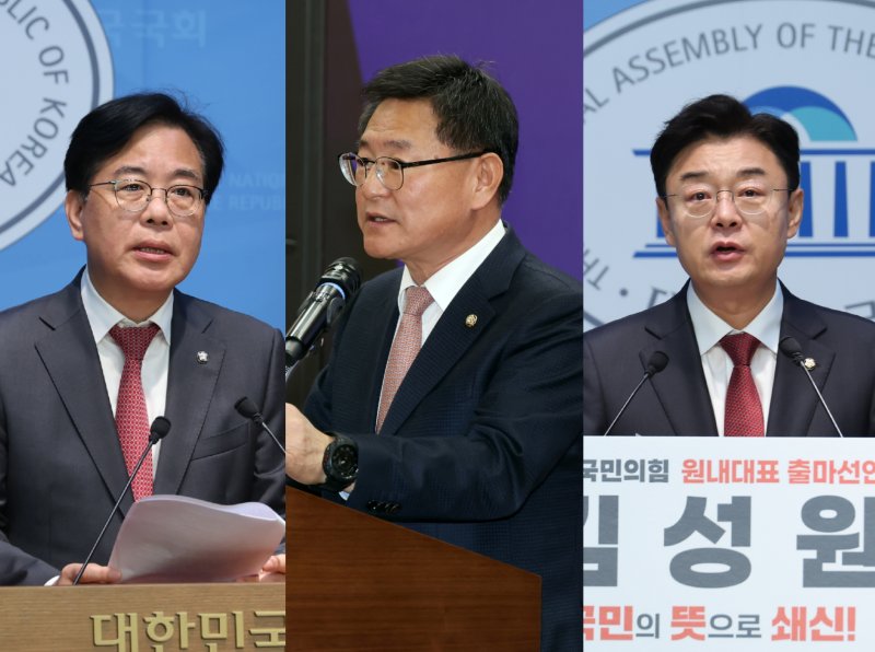[서울=뉴시스]하지현 기자 = 국민의힘의 차기 원내대표 선거가 3선의 김성원(경기 동두천·양주·연천을)·송언석(경북 김천) 의원과 4선 이헌승(부산 부산진을) 의원의 3자 대결로 치러진다.