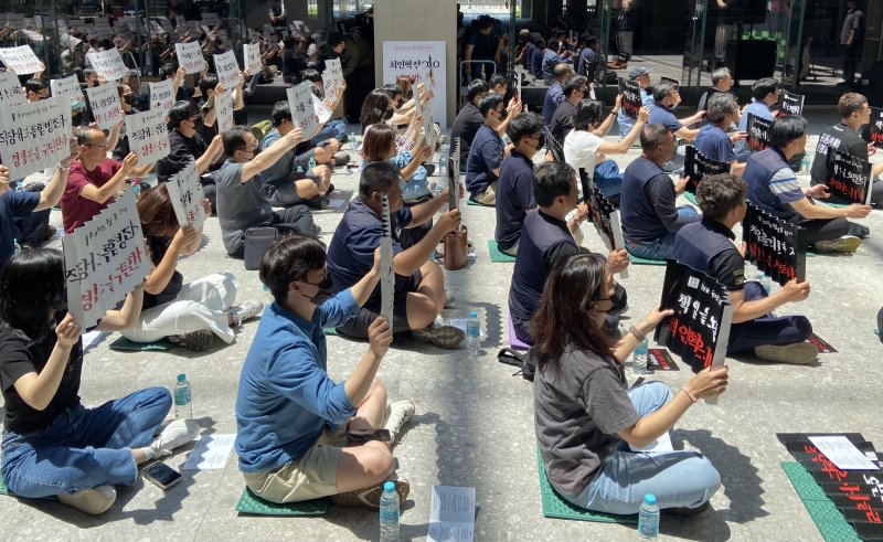 이정대 카카오지회 사무장은 "(카카오모빌리티) 대표이사는 교섭에 참여하지도 않았고 교섭권을 위임받았다던 사측 대표는 의사결정을 조정회의 중 뒤집었다"며 "현재 판교에서 일어나는 투쟁의 배경에는 경영진의 독단과 불통이란 공통점이 있다"고 비판했다.