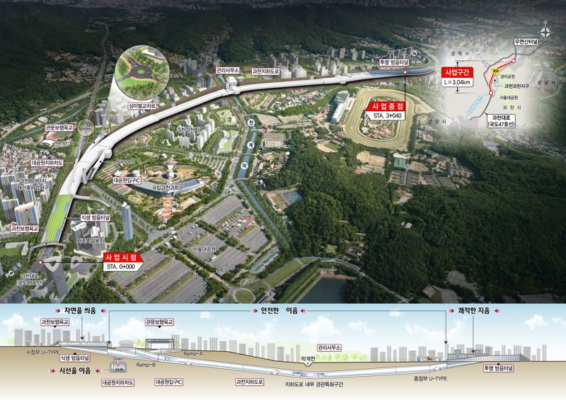 공사 주요 내용은 지하차도(2.84㎞) 1개소를 비롯해 보행육교 2개소, 방음터널 2개소, 인터체인지(IC) 및 교차로 설치 등이다.