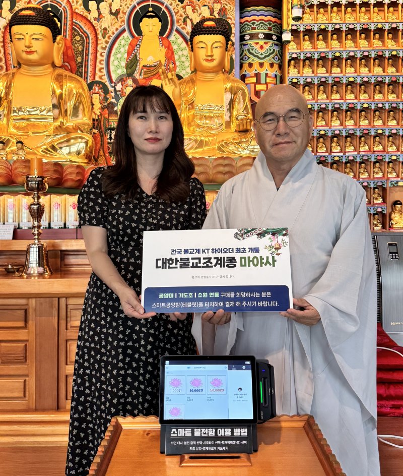 (청주=뉴스1) 박재원 기자 = KT충남충북광역본부는 대한불교조계종 마야사 사찰에 디지털 불전함을 구축했다고 16일 밝혔다.