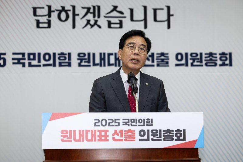 (서울=뉴스1) 김정률 박기현 기자 = 국민의힘 새 원내대표 선거에서 영남권 3선 송언석 의원(경북 김천)이 당선됐다.