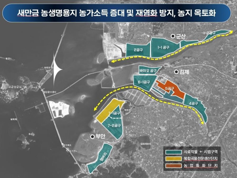 앞서 농어촌공사 새만금사업단은 지난 12일 지역 농어업인의 소득증대를 위해 새만금 농생명용지 5288㏊에 대한 영농 계약을 체결하고 군산·김제·부안 지역의 122개 농업법인이 법인당 평균 43㏊ 규모로 짧게는 1년, 길게는 10년간 밀·콩·옥수수·조사료 등을 재배키로 했다.