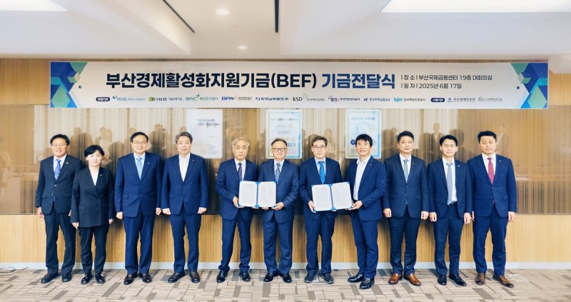 (부산=연합뉴스) 민영규 기자 = 한국주택금융공사를 비롯한 부산지역 9개 공공기관은 17일 사회혁신연구원과 부산경제진흥원에 부산경제활성화지원기금 11억7천만원을 전달했다고 밝혔다.