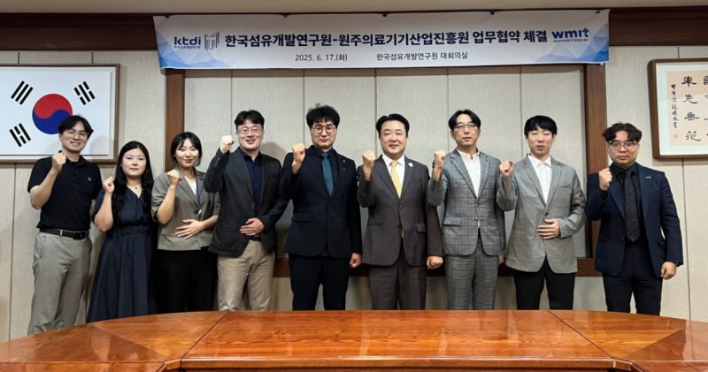 (대구=뉴스1) 김종엽 기자 = 한국섬유개발연구원은 17일 원주의료기기산업진흥원과 의료용 융합소재 공동 연구와 기술 발전 촉진을 위한 업무협약을 체결했다.