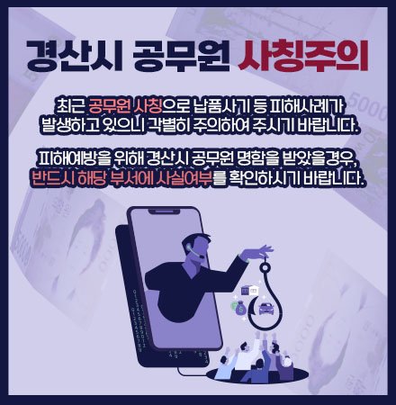 경북 경산시는 17일 시공무원을 사칭한 사기 범죄에 대해 홈페이지와 SNS 등으로 대시민 홍보전에 나섰다.