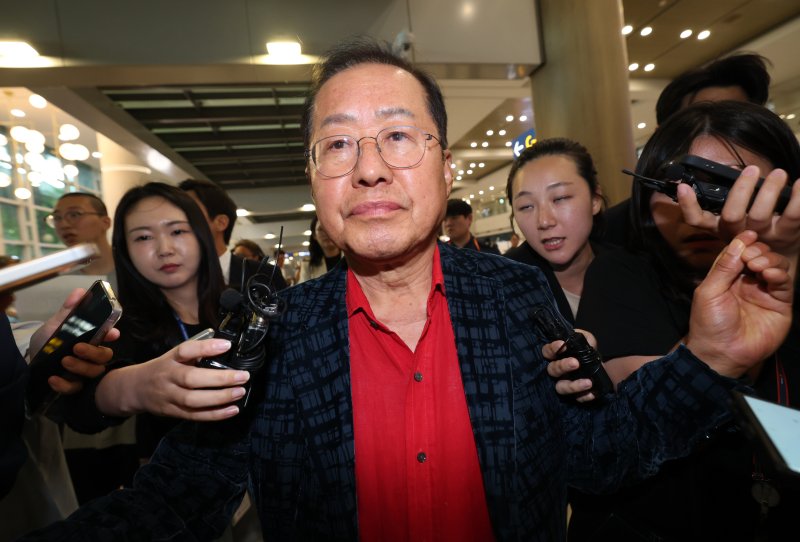 이날 미국 하와이 체류를 끝내고 인천공항으로 귀국한 홍 전 시장은 기자들과 만나 "나라가 조속히 안정됐으면 좋겠다"며 이렇게 말했다.