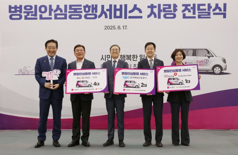 세정나눔재단은 17일 오전 부산시청 1층 대회의실에서 '병원안심동행 서비스' 차량 전달식을 갖고 부산시에 차량 4대를 추가 기탁했다고 밝혔다.