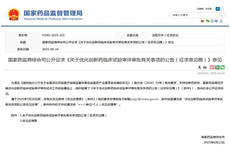 해당 공고에 따르면 NMPA은 신약에 대한 임상시험 검토 기간을 현행 60일에서 30일로 단축할 것을 제안하고 있다.