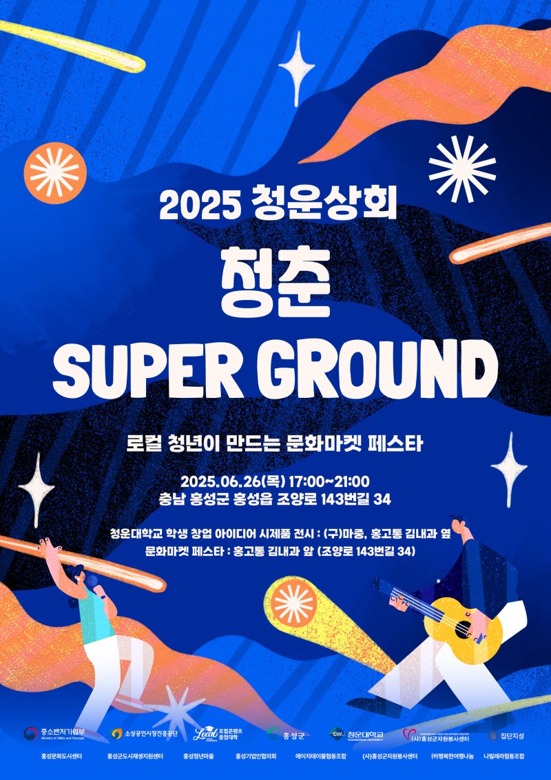 군에 따르면 청년들의 창업과 문화 활동을 지원하는 플랫폼 ‘청운상회’가 주관하는 2025 청운상회 ‘청춘 슈퍼그라운드’가 오는 26일 튜베어 옆 공터(홍성읍 오관리)에서 오후 5시부터 9시까지 진행된다.