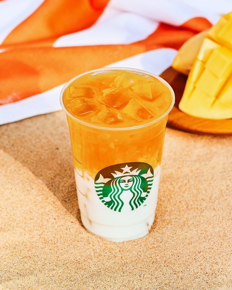 '스타벅스 망고 라떼'는 여름 대표 과일인 노란 망고 과육과 흰 우유가 층을 이뤄 휴양지를 연상시키는 비주얼이 돋보이는 음료로 여름 시즌을 맞아 한정 기간 선보인다. 남녀노소 누구나 즐길 수 있는 논카페인 음료로 달콤한 망고 다이스가 들어 있어 더운 날씨 활력을 불어넣기에 제격이다.
