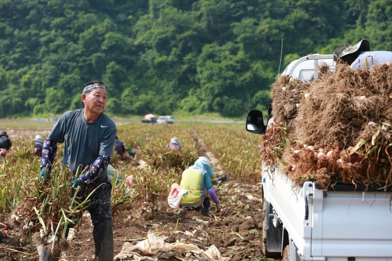 단양지역 민·관·기관 등 6000여명의 군민은 26일까지 마늘 캐기와 수거 작업 등을 도울 예정이다.