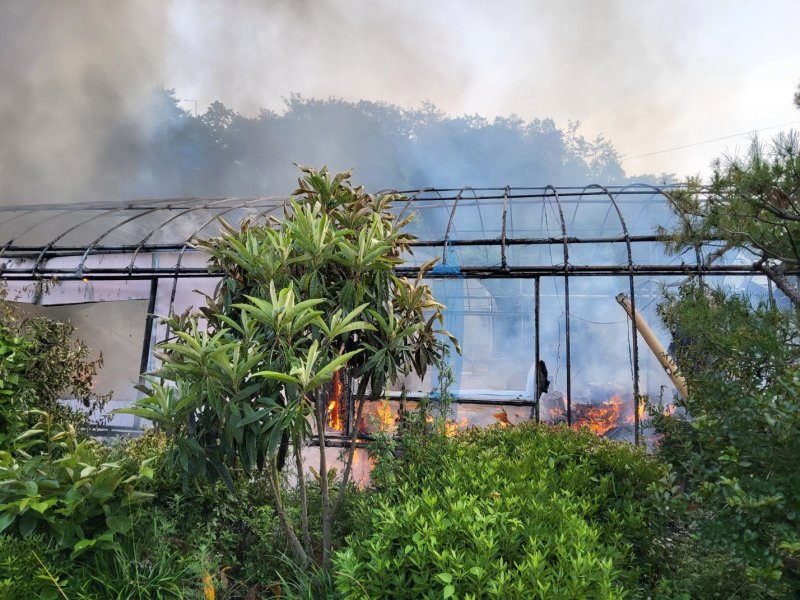 농막이 다행히 인근 야산과 떨어져 있어 산불로 이어지지는 않았다.
