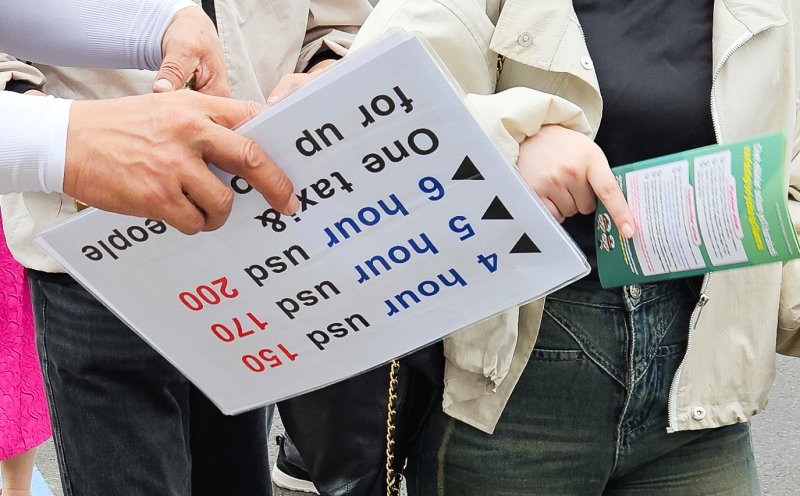 이 남성은 비싸다고 손사레를 치는 외국인 관광객에게 휴대전화 번역기로 "13만원이면 저렴한 것"이라며 호객 행위에 열을 올렸다. 그의 손에는 4시간에 150달러, 5시간에 170달러, 6시간에 200달러라고 쓴 황당한 호객용 피켓이 들려 있었다.