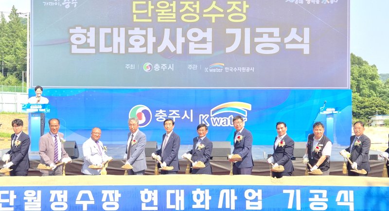 18일 충주시와 수자원공사 등 관계 기관은 충주시 단월동 사업부지에서 단월정수장 현대화사업 기공식을 했다.