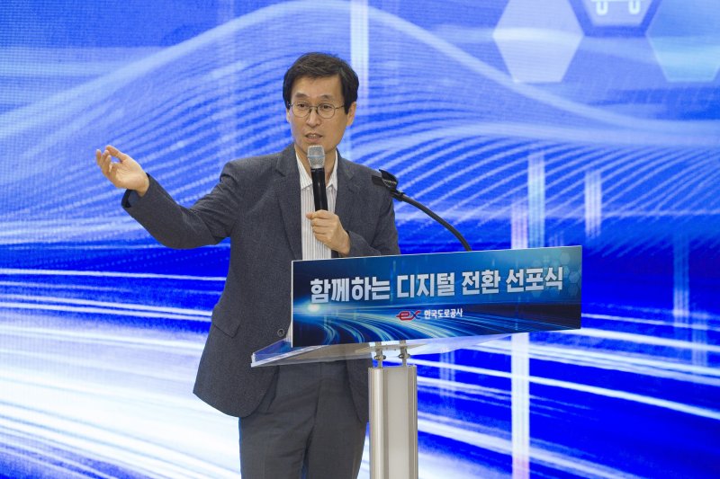 [서울=뉴시스]이연희 기자 = 한국도로공사는 18일 경북 김천 본사에서 '함께하는 디지털 전환 선포식'을 개최하고 업무 전반에 디지털 신기술을 적극 도입하겠다고 선언했다.