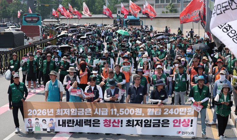 민주노총은 이날 오전에는 광화문역 일대에서 피켓 시위를 전개하고 오후에는 행진과 공동파업대회를 통해 내년도 최저임금을 1만1500원으로 대폭 인상해야 한다고 촉구했다.