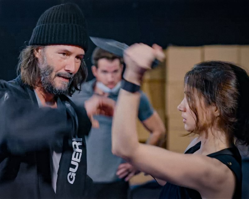한편, 키아누 리브스는 '이브 마카로' 역의 아나 데 아르마스와 2015년 작품 '노크 노크'에서 이미 함께 연기한 바 있다. 키아누 리브스는 '노크 노크'에 이어 10년 만에 재회한 아나 데 아르마스에 대해 "정말 집중력이 뛰어난 배우다, 그와 이미 함께 작업을 했는데, 액션 훈련을 시작하자마자 아나 데 아르마스의 재능을 발견할 수 있었고 그가 그 모든 과정을 즐기는 것을 보며 멋지다고 생각했다"라고 찬사를 보냈다.