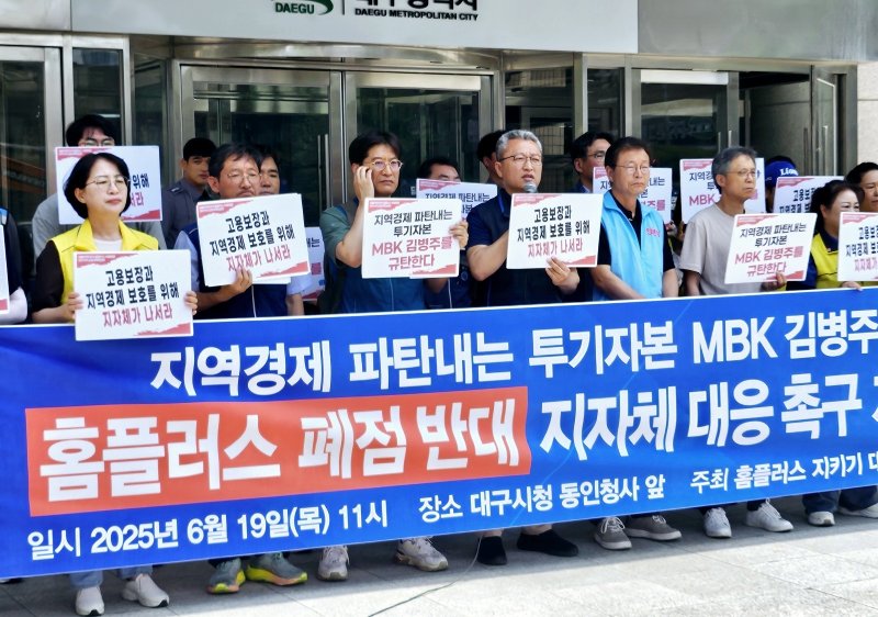 이어 "마트 노동자와 주민 생존권, 지역경제 안정을 지켜내기 위해 대구시 등 지자체는 홈플러스 폐점 철회와 상권 보호에 적극적으로 나서야 한다"고 말했다.