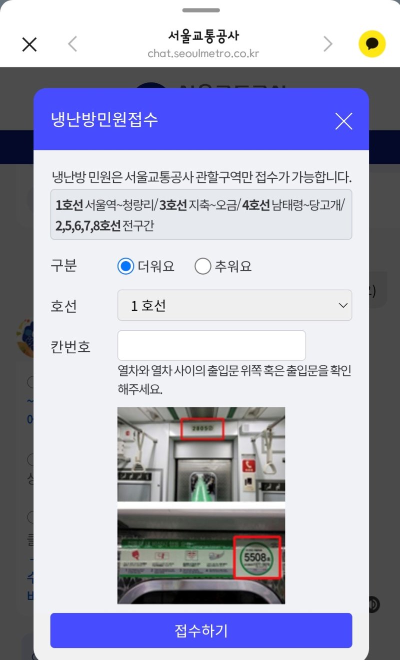 공사는 열차 이용 중 덥거나 추울 경우 '또타지하철' 앱 혹은 공식 챗봇을 통해 민원을 접수할 것을 권장하고 있다.