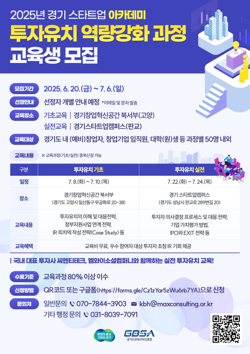 경과원 관계자는 "스타트업에 투자유치는 생존과 직결되는 중요한 역량"이라며 "단계별 맞춤형 교육과 실전 중심 프로그램을 통해 창업자들이 실질적 도움을 얻을 수 있을 것으로 기대한다"고 말했다.