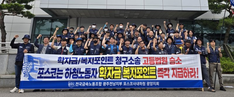 [광주=뉴시스]이영주 기자 = 법원이 포스코 사내 기금 관리 협력사가 근로자 지위 확인 소송 중인 하청 노동자들에게 자녀 학자금 등 기존 복지 혜택 지원을 중단한 것은 위법하다고 재차 판결했다.