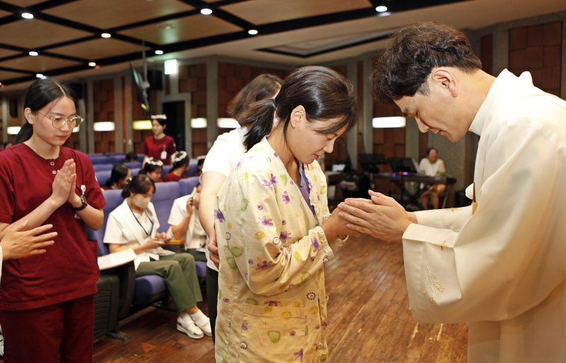 축복예식은 대전성모병원 원목실 김제동 실장신부의 주례로 진행됐다. 김 신부는 마음을 담은 간호사의 손길을 통해 환우들이 희망을 갖길 기도했다.