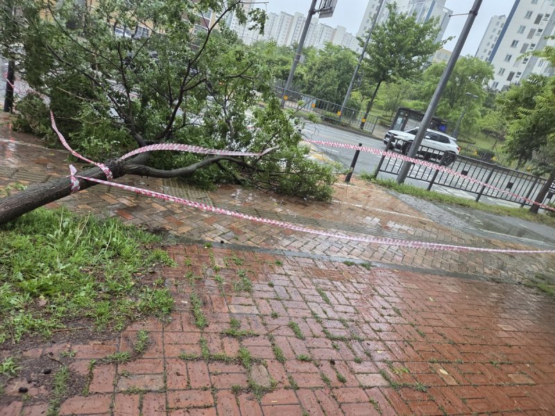 세종에서도 나무 6그루가 쓰러졌다. 대전에서는 오후 9시 11분께 유성구 안산동에서 가로수가 쓰러지고 옥상 천막이 날아가는 등 3건의 신고가 들어왔다.