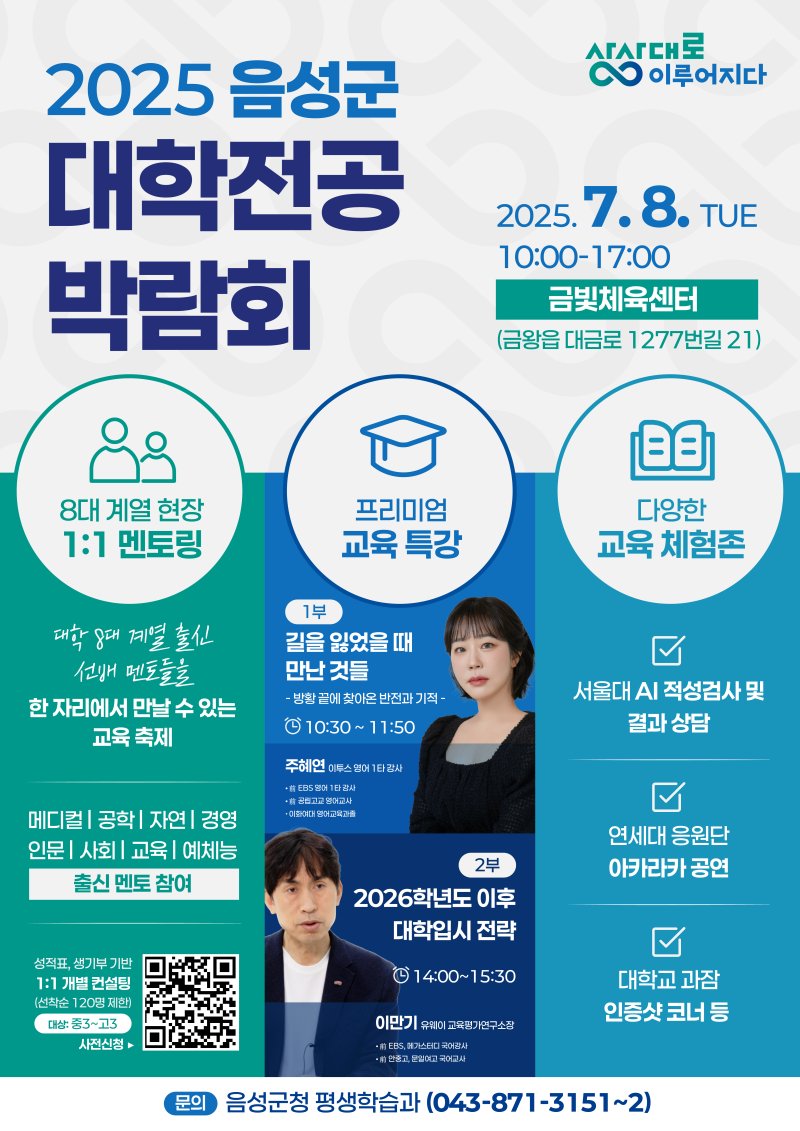 [음성=뉴시스] 안성수 기자 = 충북 음성군은 '2025 충북 음성군 대학학전공박람회'가 다음 달 8일 오전 10시 음성금빛체육센터에서 열린다고 21일 밝혔다.