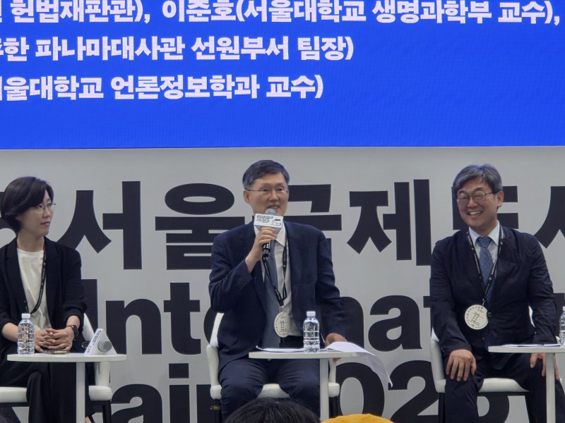 이날 도서전 강연에는 이준호 서울대학교 생명과학부 교수, 정경순 주한 파나마대사관 선원부서 팀장, 책 '줬으면 그만이지'의 김주완 작가와 '다큐 김장하'를 제작한 김현지 MBC PD도 함께 했다. 이들 역시 '김장하 장학생'이다.