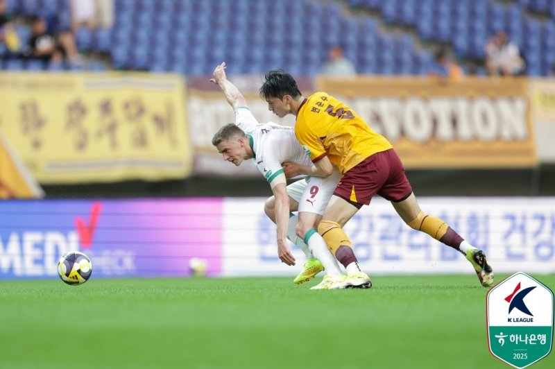 상위권 경쟁 중인 대전은 승점 1점 획득에 그쳐 승점 34(9승 7무 4패)로 2위를 마크했다. 선두 전북 현대(승점 42)와 승점 차는 8점이다.