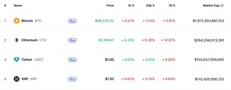 23일 오전 5시 현재 글로벌 코인 시황 중계사이트인 코인마켓캡에서 비트코인은 24시간 전보다 3.15% 하락한 9만9230달러를 기록, 10만달러가 붕괴했다.
