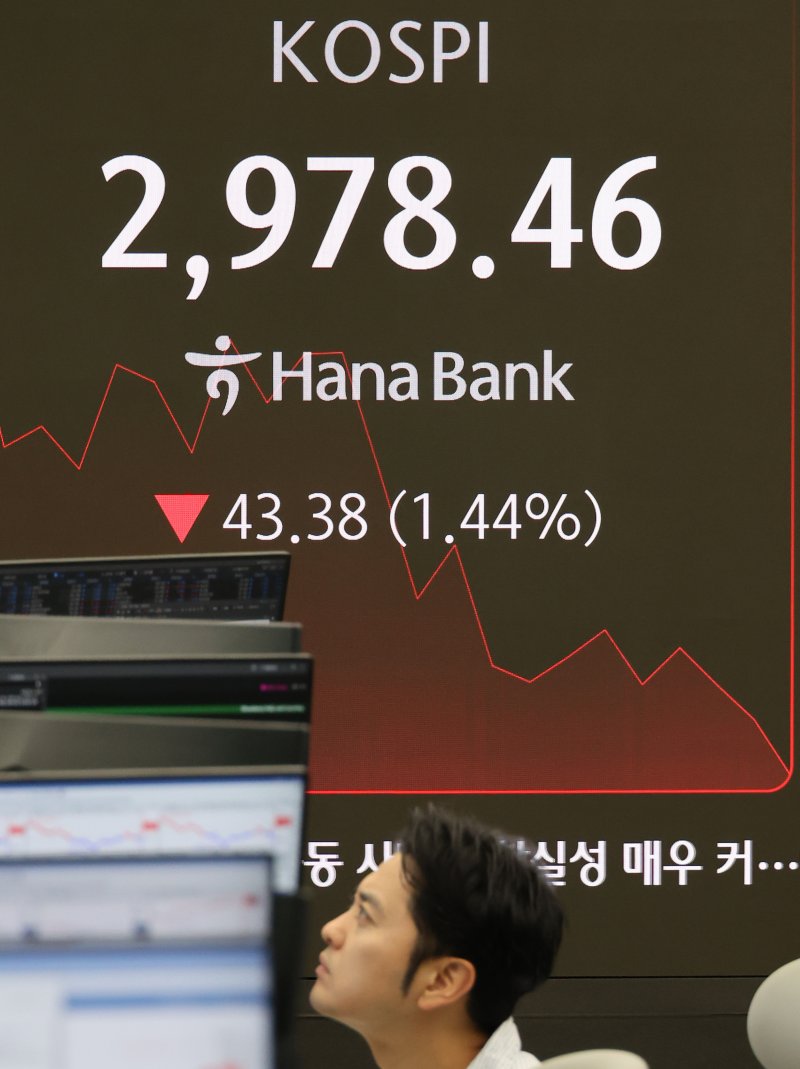 코스피 지수는 지난 20일 3021.84로 마감하며 3년 만에 3000선을 돌파했지만, 하루 만에 이날 장 초반부터 1% 넘게 떨어지면서 2980선까지 내려앉았다.