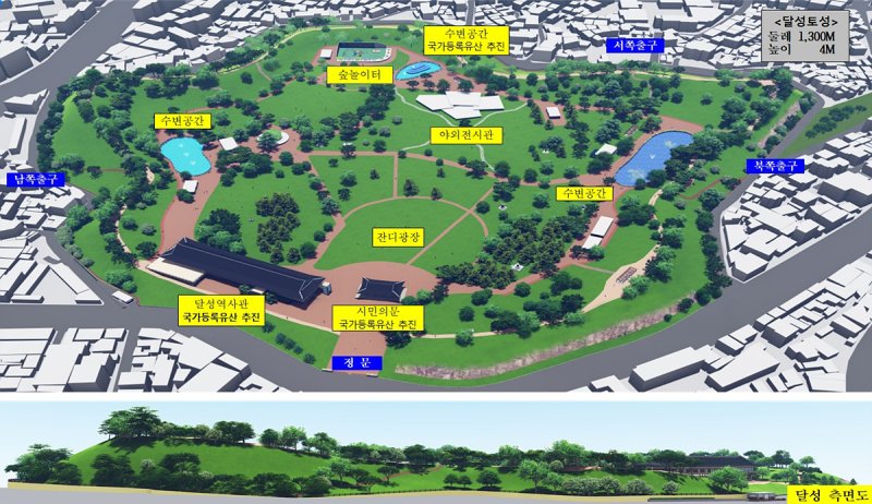 대구시는 655억 원을 투입해 올해부터 정밀 발굴조사를 시작으로 동물원 이전, 성체와 내부 복원, 달성역사관·야외전시관·잔디광장·휴게공간 조성 등 2034년까지 달성토성 복원사업을 단계적으로 추진할 방침이다.