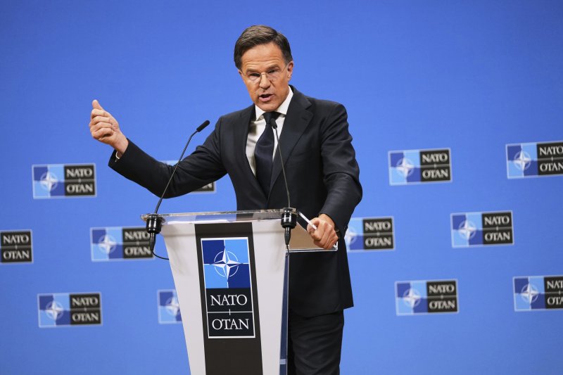 [서울=뉴시스] 김승민 기자 = 마르크 뤼터 북대서양조약기구(NATO·나토) 사무총장이 나토 정상회의를 하루 앞둔 23일(현지 시간) '국내총생산(GDP) 대비 5% 국방비 지출' 목표를 재확인하며 "예외는 없다"고 밝혔다.
