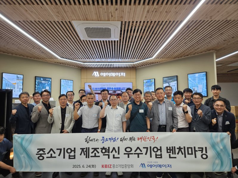 [서울=뉴시스] 권혁진 기자 = 중소기업중앙회(중기중앙회)는 24일 인천 서구에 소재한 스마트공장 구축 우수기업인 에어메이저를 찾아 '2025년 제조혁신 우수기업 벤치마킹'을 실시했다.