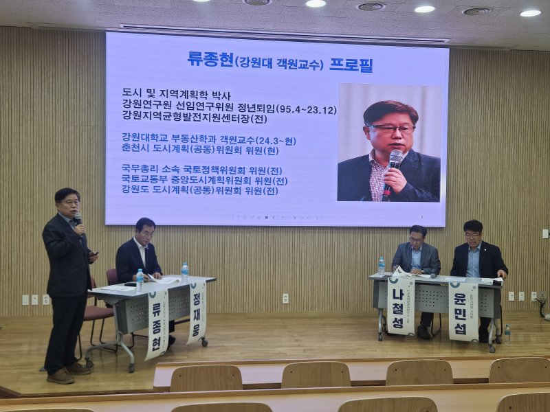 강원시민사회단체연대회의와 춘천시민연대는 24일 강원대 춘천캠퍼스에서 '강원도 행정복합타운 과연 무엇이 문제인가' 토론회를 개최했다.