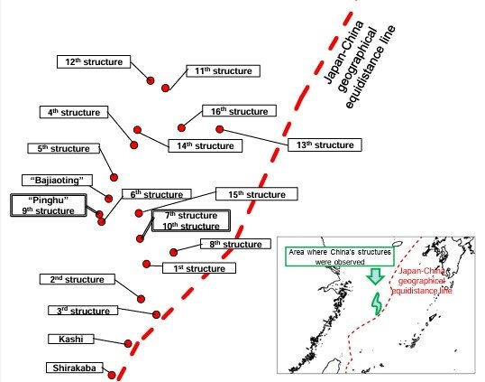이와 관련해 일본은 자신들이 주장하는 중일 중간선 서쪽에서 그동안 총 20기의 중국 측 구조물을 확인해왔다며 중간선 서쪽이라고 하더라도 중국의 일방적인 개발 행위는 중지돼야 한다고 주장했다.